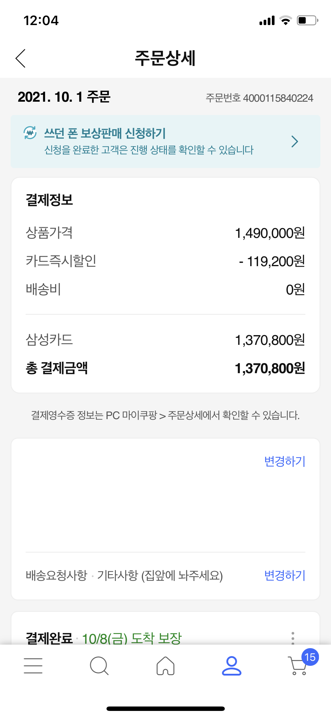 사전예약 시간이 꽤 흘렀는데도, 마이페이지 진입시에 쿠팡앱이 원활하지 않은 모습을 보여줬습니다.
